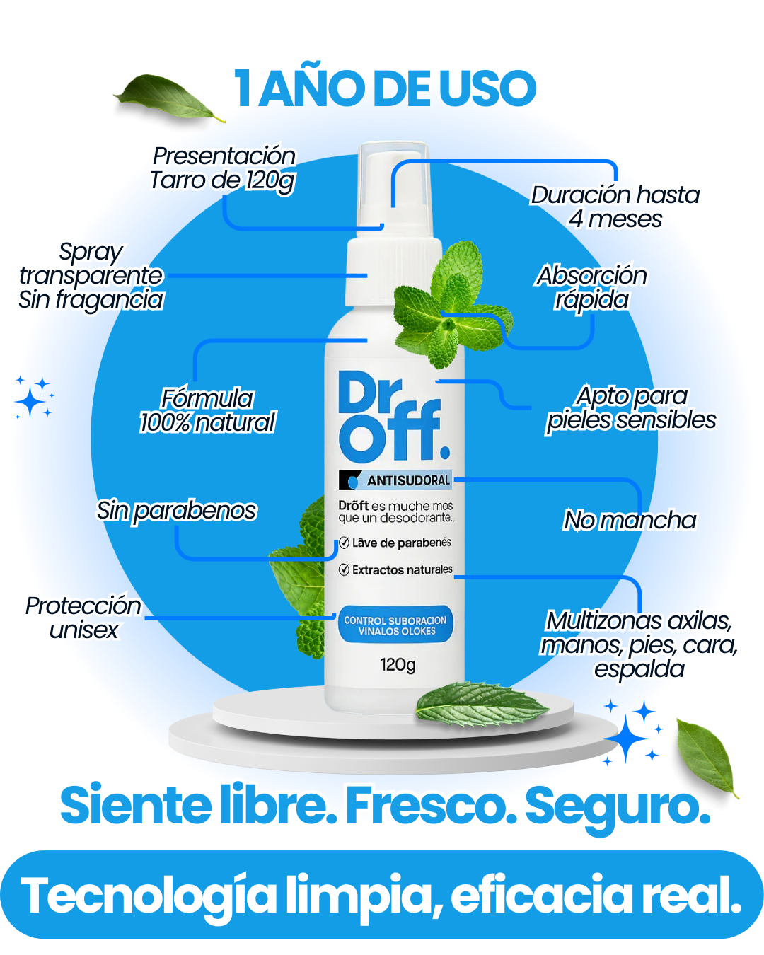 Dr. Off es un producto 100% unisex, ideal para cualquier persona que quiera controlar el sudor sin químicos agresivos.